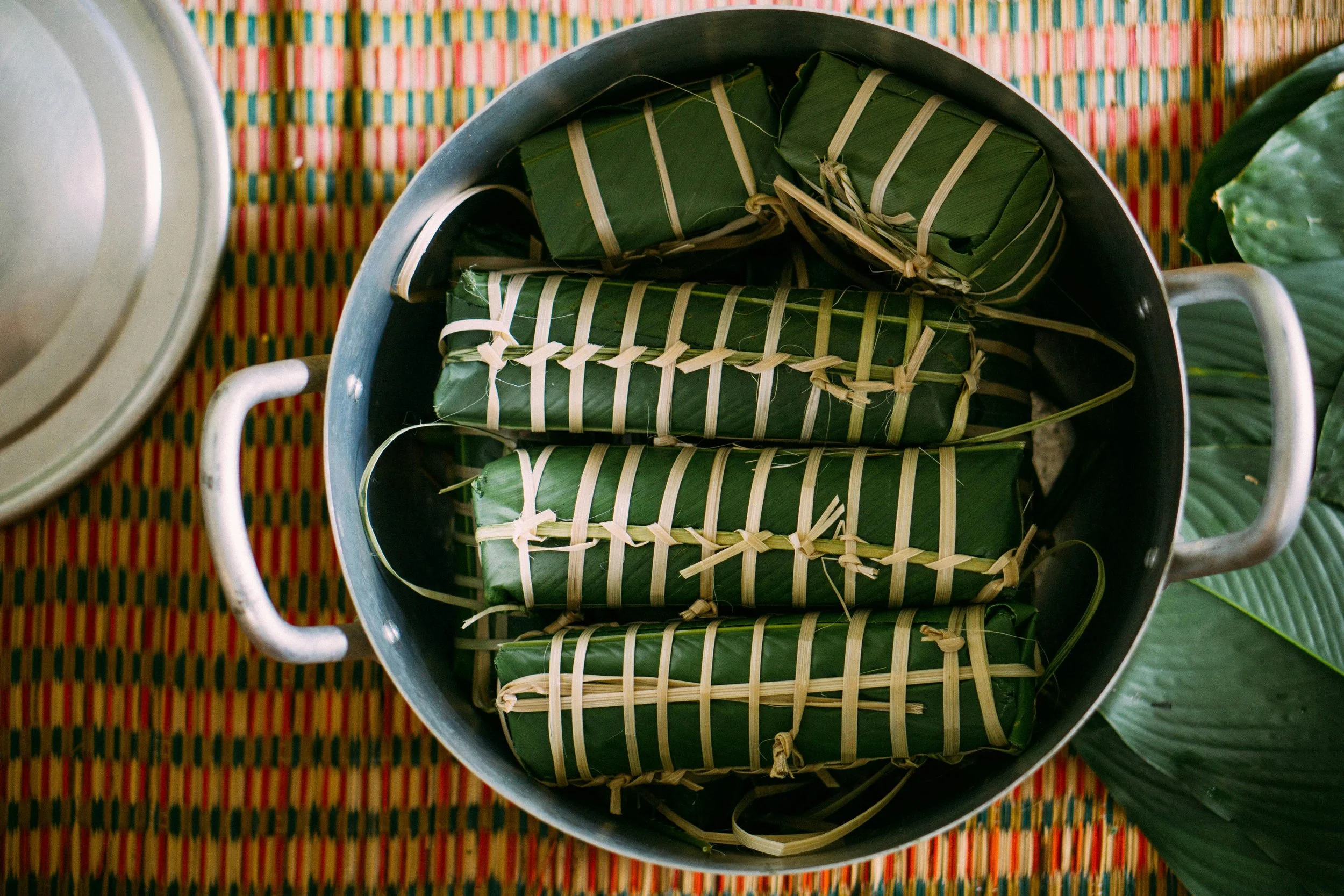 Lemongrass chicken stuffed with a fragrant kroeung and herb filling, grilled over high heat. Served with pickled vegetables and sweet chili dipping sauce.